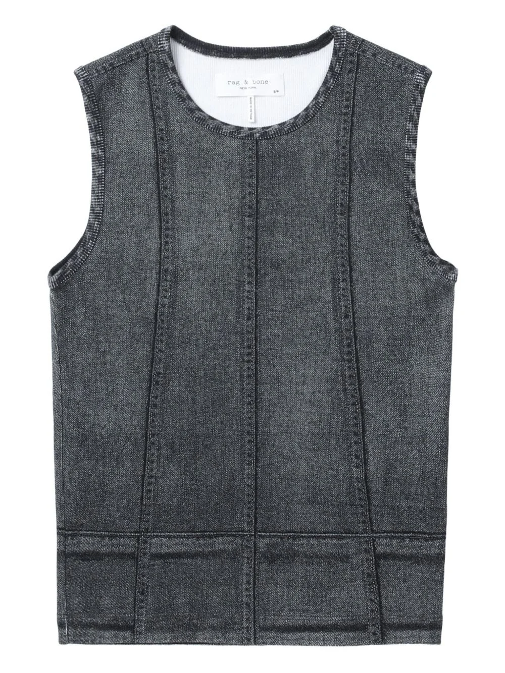 denim-print panelled tank top Highlights - Black - Denim print - Sleeveless - Round neck Imported Composition Cotton 95%, Elastane 5% Washing instructions Read Manufacturer Guidelines