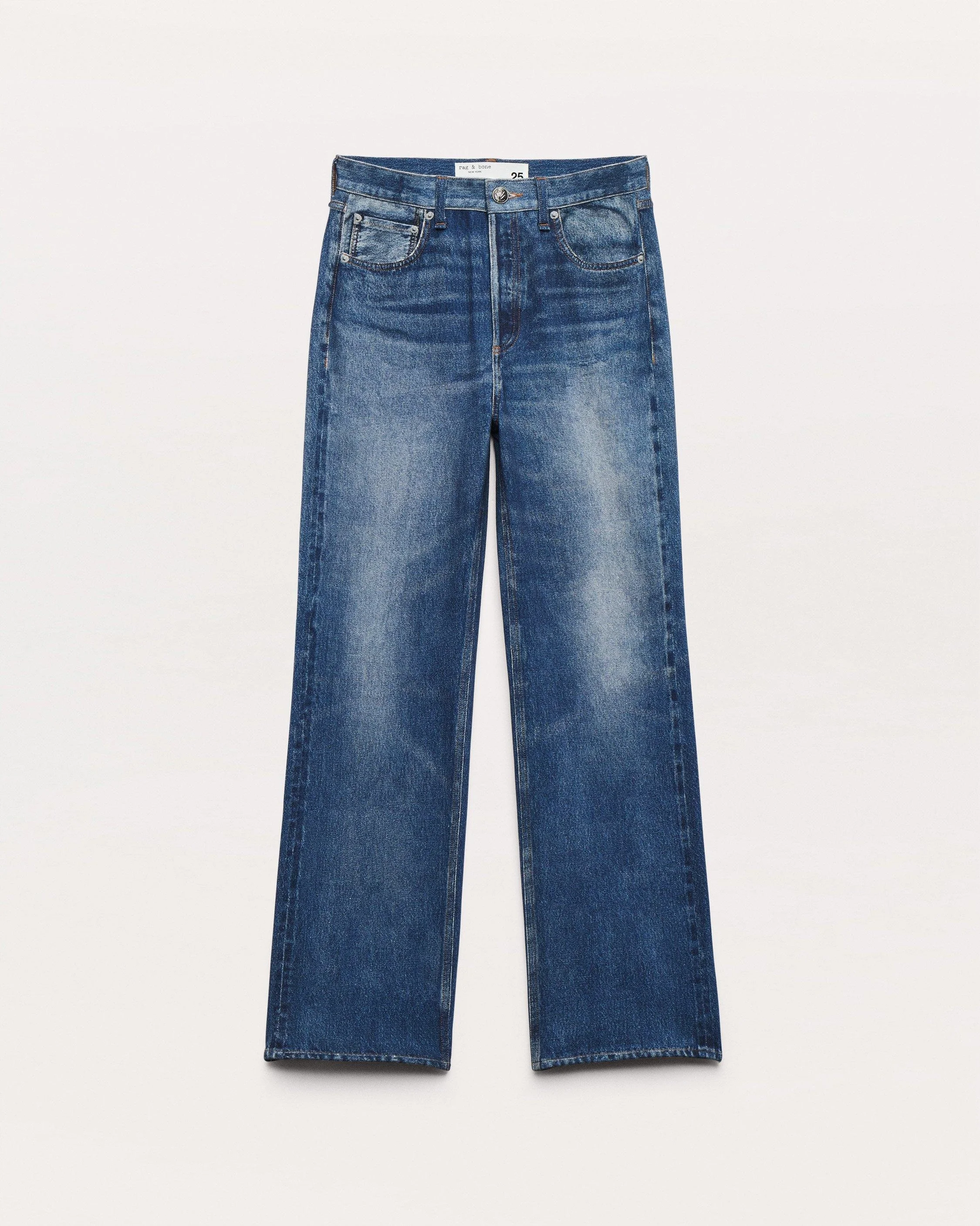 Miramar, our revolutionary printing technique, makes any material look like denim. These Shea pants are cut and sewn from cotton terry cloth that's ultra-soft on the inside and printed on the outside to look like your favorite jeans. Featuring relaxed, straight legs that hit at the ankle, plus functional belt loops, front scoop pockets, and a zip fly with a button closure, the high-rise style further achieves its comfortable fit and feel with the other pockets and denim details digitally printed on the fabric. Size & Fit • High-rise, relaxed straight leg • Size 26: 12" front rise, 30" inseam, 19" leg opening • Model is 5'10.5 wearing size 25 Features & Details • 100% Cotton • Turn garment inside out, machine wash cold, do not use bleach, do not tumble dry, lay flat to dry • Zip fly and metal dagger button at center front • Trompe l'oeil denim print, printed back pockets, printed rb embroidery, clean finished hem • Scoop pockets • Imported Product ID: RC4325F7MTE