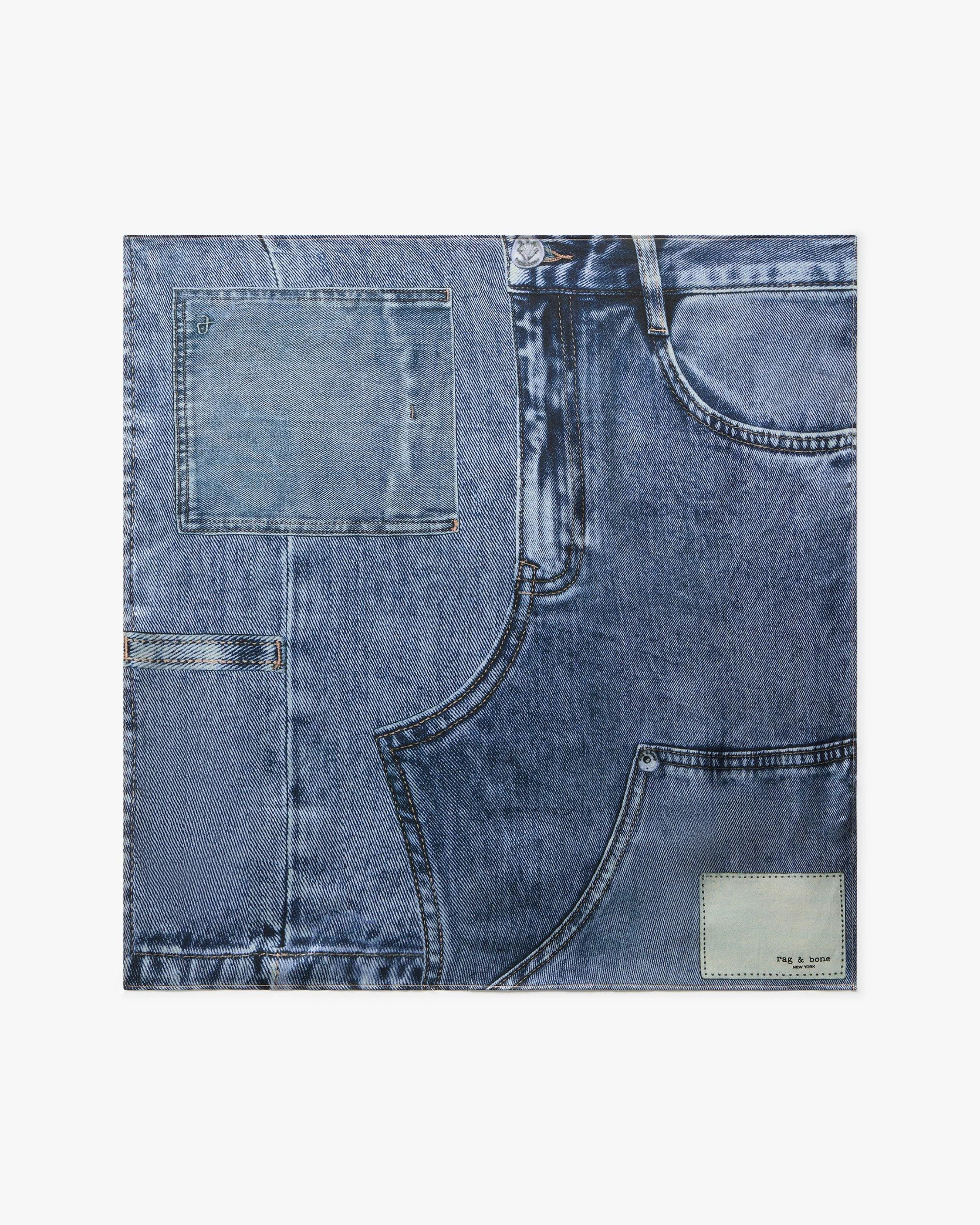 Think this is denim? Think again. Crafted from luxe silk twill, this scarf pulls off the ultimate illusion with our revolutionary Miramar printing technique that makes any material look like denim. With uncanny precision, it's expertly printed to resemble a reconstructed pair of our signature jeans. Tie it around your neck, in your hair, or on your bag. You'll fool everyone. Size & Fit • Dimensions: 60 x 60 cm Features & Details • 100% silk • Dry clean only • Imported Product ID: RL3225FX82O