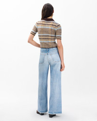 Miramar, our revolutionary printing technique, makes any material look like denim. These Sofie pants are cut and sewn from cotton terry cloth that's ultra-soft on the inside and printed on the outside to look like your favorite jeans. Featuring super-wide, full legs with flared hems, plus functional belt loops, front scoop pockets, a zip fly, and a button closure, the high-rise style further achieves its comfortable fit and feel with the back pockets and other denim details digitally printed on the fabric. Size & Fit • High-rise, full-length wide leg • Fits true to size • Size 26: 12.25" front rise, 34" inseam, 25.5" leg opening Features & Details • 100% cotton • Machine wash cold inside out & lay flat to dry • Trompe l'oeil denim print on terry fabric • Digitally printed rivets and rb embroidery? • Signature metal dagger button, zip fly • Functional belt loops • Zip fly with a button closure • Functional front pockets • Digitally printed back pockets and coin pocket • Imported Product ID: RC1225F7MTE