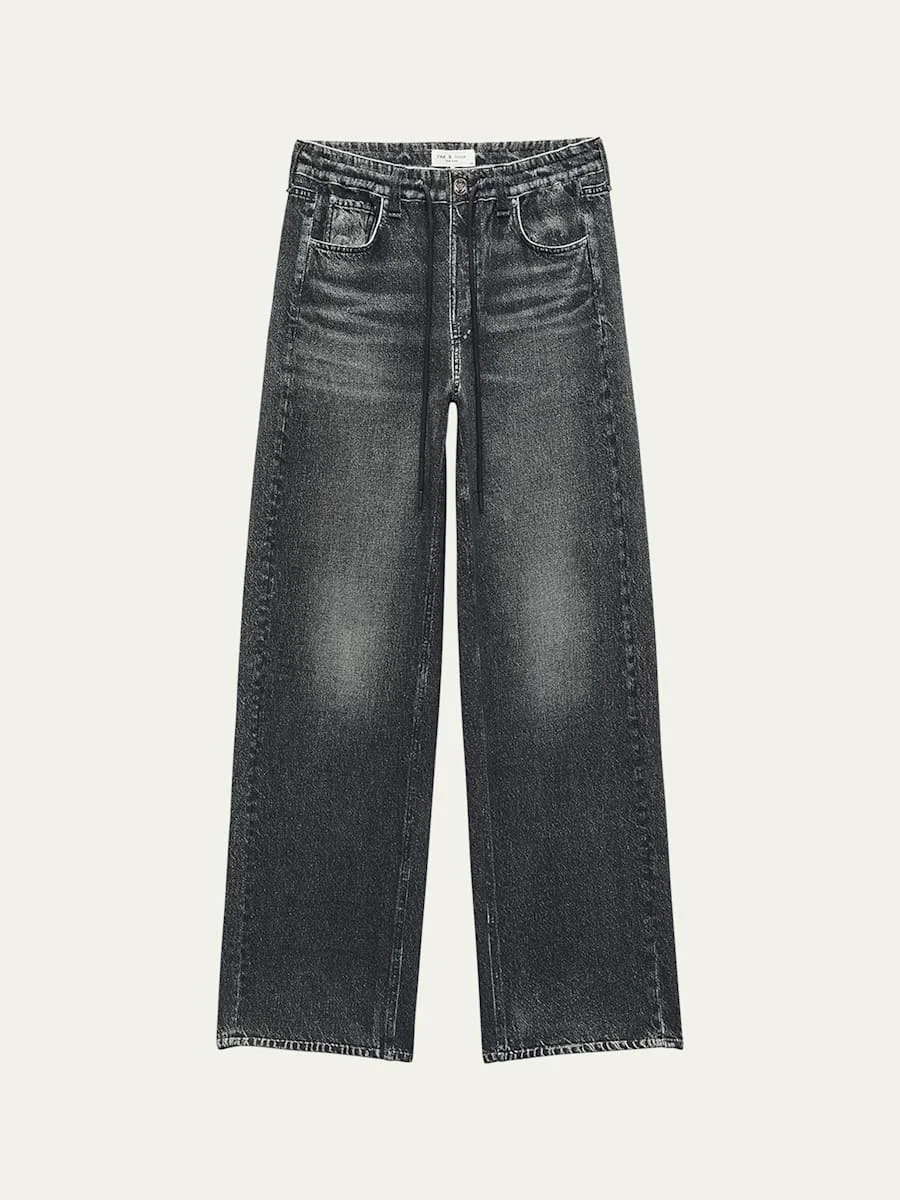 Rag amp; Bone "Miramar Terry" digitallyprinted denim jeans crafted in supersoft cottonterry with a drawstring waistband Approx. 11" rise; 31.5" inseam Midrise; sits high on the hip Side seam pockets Wide, relaxed legs Full length Pullon style Cotton Machine wash cold Imported