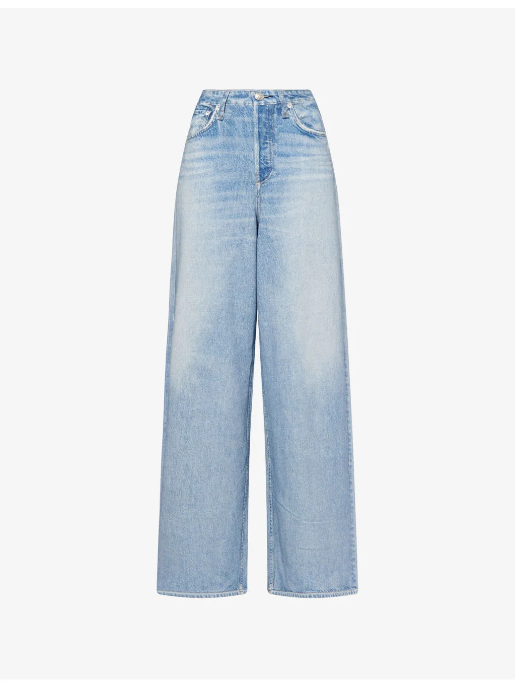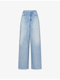 PRODUCT DETAILS - rag & bone cotton-jersey jeans - 100% cotton; lining 100% cotton - Exposed button and concealed zip-fly fastening at front - Relaxed fit, high-rise, wide leg, belt loops, two slip pockets at front, denim print - Machine wash at 30°C - True to size - Size 26: rise 12in / 31cm, inside leg 32in / 81cm, leg opening 24in / 61cm - Model is 5ft 10in/1.78m and wears a size 26 - Lightweight, stretchy Ref: R04539025