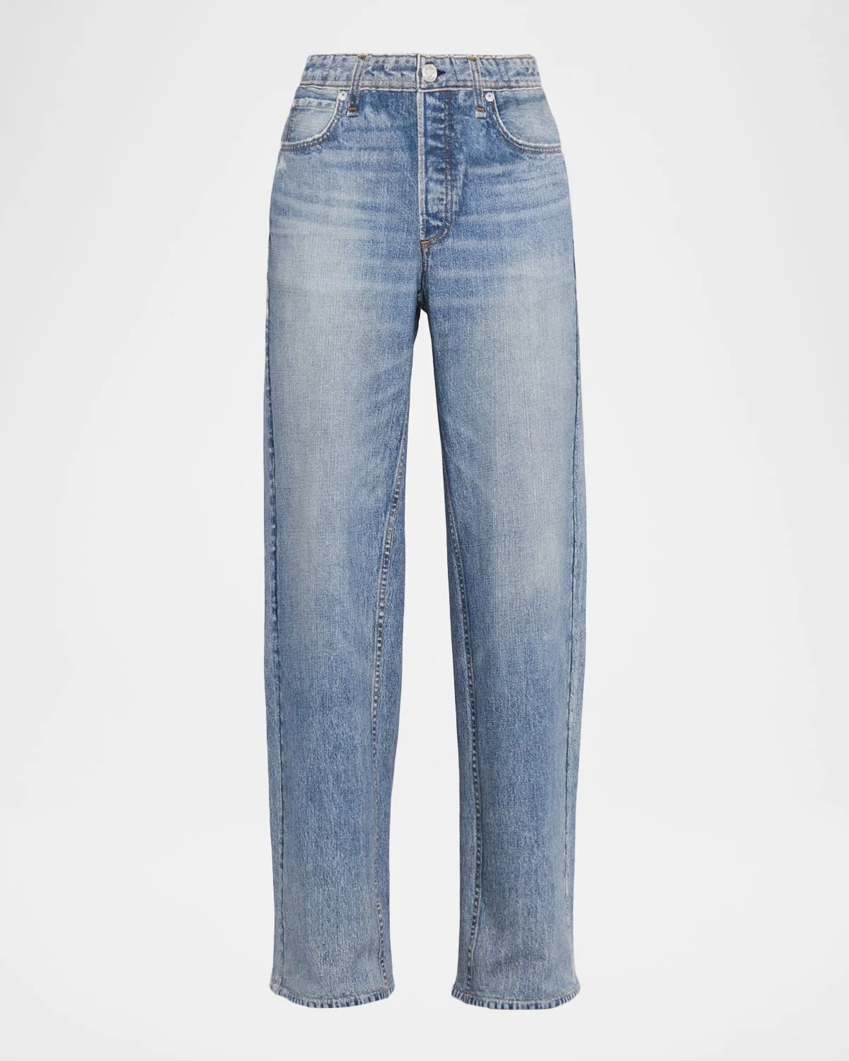 Rag amp; Bone "Miramar Terry" digitallyprinted denim jeans crafted in supersoft cottonterry Approx. 11" rise; 31.5" inseam High rise Front scoop pockets Straight, relaxed legs Full length Button/zip fly; belt loops Cotton Machine wash cold Imported