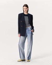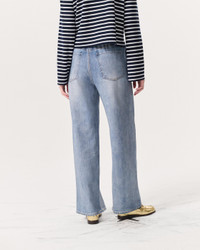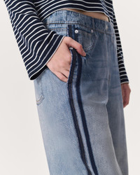 Miramar, our revolutionary printing technique, makes any material look like denim. These wide-leg track pants are individually cut and sewn from cotton terry cloth that's ultra-soft on the inside and printed on the outside to look like your favorite jeans. Featuring a pull-on elastic waistband and hidden side-seam pockets, the mid-rise style further achieves its comfortable fit and feel with its sporty side stripes, other pockets, and denim details digitally printed on the fabric. Size & Fit Mid-rise, wide leg? Size Small: 11" front rise, 32 1/8" inseam, 20" leg opening Model is 5'10.5 wearing size small Features & Details 100% Cotton Turn garment inside out, machine wash cold, do not use bleach, do not tumble dry, lay flat to dry Trompe l'oeil denim print with elastic waistband Printed five-pocket silhouette, printed fly, printed belt loops, printed button and rivets, printed rb embroidery, printed side stripes Side seam pockets Imported Product ID: WCW25S70018201