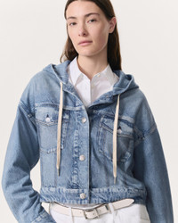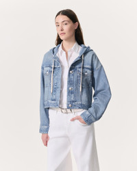 Miramar, our revolutionary printing technique, makes any material look like denim. This cross between a trucker jacket and a hooded sweatshirt is individually cut and sewn from cotton terry cloth that's ultra-soft on the inside and printed on the outside to look like your favorite denim jacket. Featuring functional drawcords, side hip pockets, and signature dagger buttons down the front and cuffs, the relaxed style further achieves its comfortable fit and feel with the other pockets and denim details digitally printed on the fabric. Size & Fit Relaxed fit, hits below the waist Size Small: Front Length 21 3/8", back Length 21 3/4", chest 42 1/4", sleeve length 32" Model is 5'10.5 wearing size small Features & Details 100% Cotton Turn garment inside out, machine wash cold, do not use bleach, do not tumble dry, lay flat to dry Printed chest pockets, printed seams, unlined Hood with functional drawcords, center front button closure Hip welt pockets Imported Product ID: WCW25S40018201