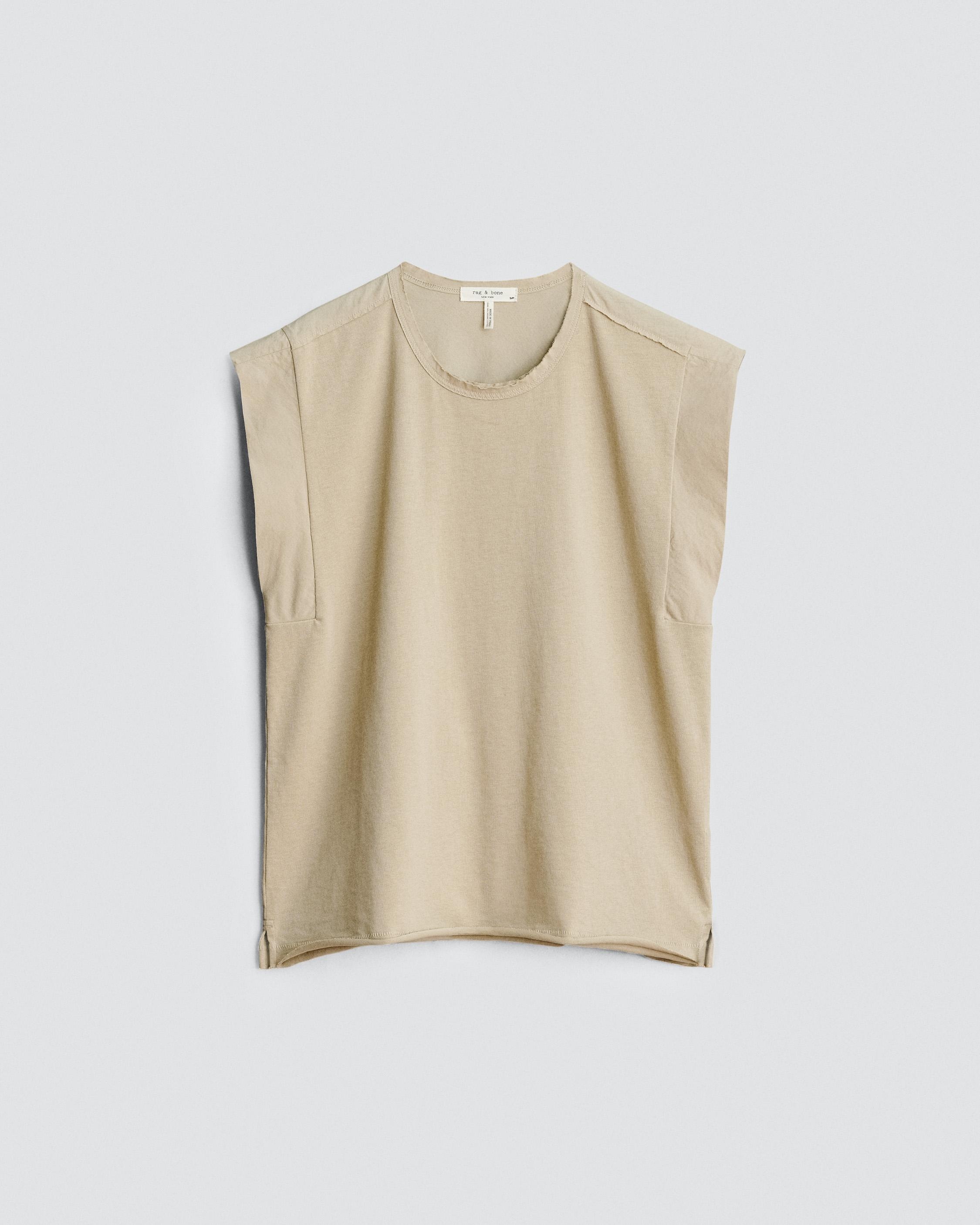 An updated take on the muscle tee, now reimagined in mid-weight organic cotton that holds structure and shape. Complete with poplin panels. Size & Fit Relaxed fit Size Small: center back length 24 1/2", chest 37", sweep 38 1/2" Model is 5'10.5" wearing a size small Features & Details 100% Organic Cotton Machine wash cold inside out with like colors gentle cycle. Do not bleach. Tumble dry low cool iron if needed. Woven taffeta combo fabric Imported Product ID: WCC23PT002CH02