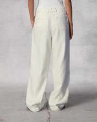The Newman. A nod to an icon. Fixed with double pleats to achieve a high-rise, our wide-leg pant is tailored a refined blend of cotton and linen. Size & Fit High-rise, wide leg Fits true to size Size 4: 30" waist, 42" hip, 12 3/4" front rise, 31 1/2" inseam, 19 1/2" leg opening Model is 5'7.5" wearing a size 2 Features & Details 58% Cotton 42% Linen Dry clean only Waistband curtain, keeper button inside waistband Unlined Zip hook and bar closure Side seam pockets, back welt pockets Imported Product ID: WAW24P7011LI11