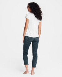 A high-rise, slim-fit jean with a cropped cigarette leg. Crafted from high-quality Japanese comfort stretch denim in Ziggy, a medium indigo wash. Zip fly. Made in the USA. Size & Fit High-rise ankle cigarette, sits below natural waist, slim through hip and thigh, cigarette leg Fits true to size 10.75" rise, 27" inseam, 12.5" leg opening Features & Details 10 ounce Japanese comfort stretch denim in a dark medium indigo wash 98% Cotton 2% Polyurethane Machine washable Zip closure Five-pocket silhouette Made in the USA Product ID: WDD22H2647K1ZY