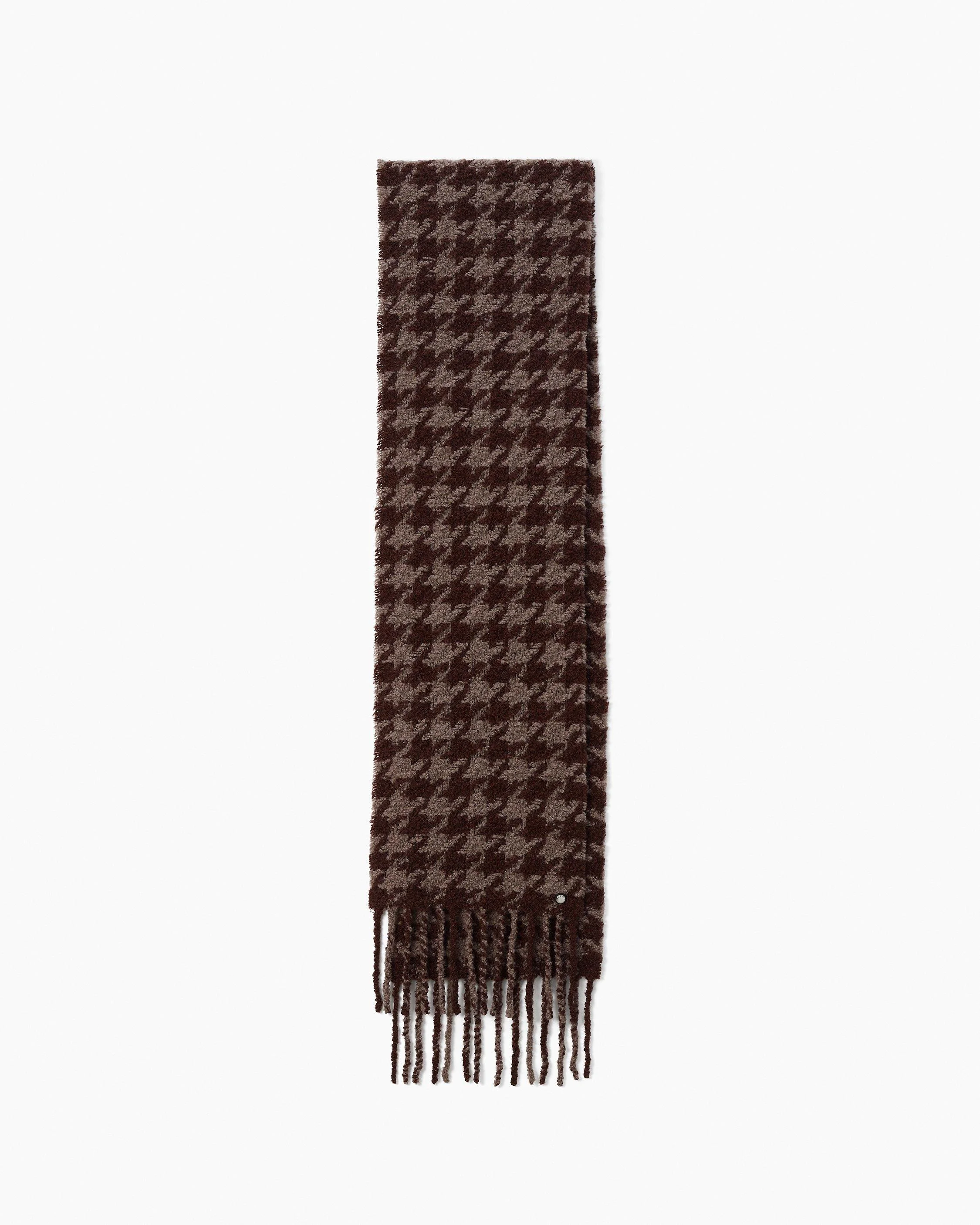Just chunky enough. Crafted in Italy from an alpaca blend, this scarf has a soft, plush feel. Its two-tone, slightly exaggerated houndstooth pattern makes a statement simple tassles feature at its ends. Our signature logo metal rivet features to one side for subtle detail. Size & Fit • Dimensions: 26 x 200 cm Features & Details • 90% alpaca, 10% nylon • Dry clean only • Twisted fringed hems • Signature logo rivet at the hem • Made in Italy Product ID: RL2625FX25A