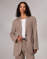 The new wardrobe essential. This take on the season's oversized blazer is tailored from soft stretch wool with an understated glen plaid pattern. Its visual texture is complemented by faux leather buttons. Size & Fit Relaxed fit, long sleeve, hits below the hip Size 4: Front length 32 1/4", back length 30 3/4", chest 41 1/2", sleeve length 33 3/4" Model is 5'9" wearing size S Features & Details 98% Wool 2% Spandex Lining and pocketing: 51% Viscose 49% Polyester Dry clean only Faux leather buttons, half lined Chest welt pocket, hip besom pockets with flaps Imported Product ID: WAW24H40292229