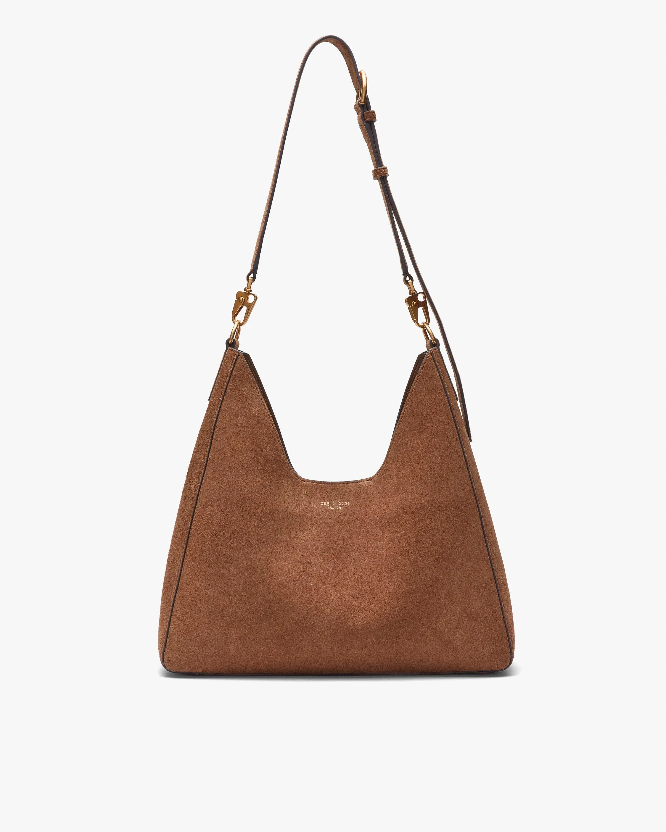 Meet the Parker Hobo. Crafted from suede in a soft silhouette that's slouchy yet sophisticated. With a long adjustable strap, it beautifully contours to you for an effortless, off-duty look whether held in the crook of your arm, over your shoulder, or across your body. For additional versatility, the bag includes an interior zipped pouch that detaches to double as a standalone piece. Size & Fit • Dimensions: 14" x 4" x 13" • Strap length: 18.9"- 23" Features & Details • 100% suede • Foil logo • Magnet closure • Dust bag included • Professional leather clean only • Imported Product ID: SD101303
