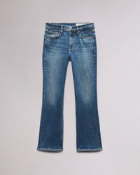 The Peyton. Our modern take on the timeless mid-rise bootcut with a slim fit through the thigh and a subtly flared hem. Crafted from our Flexi denim that smooths, sculpts, and stretches for ultimate comfort and style wherever life takes you. In Willow, a medium indigo wash with a clean, finished hem. Size & Fit Mid-rise, bootcut, ankle length Size 26 : 10 3/4" front rise, 27" inseam, 16 1/2" leg opening Model is 5'7.5" wearing a size 25 Features & Details 92% Cotton 6% Polyester 2% Spandex Flexi, medium indigo wash Machine wash cold inside out with like colors, gentle cycle, do not use bleach or tumble dry, hang to dry, low iron if need, color may transfer. Signature dagger button at center front with a zipper fly, metal rivets, leather patch Clean hem Five-pocket silhouette Imported Product ID: WDD24F2972FUWI