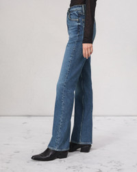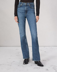 The Peyton. Our modern take on the timeless high-rise bootcut with a slim fit through the thigh and a subtly flared hem. Crafted in our Vintage Stretch for a structured look that's actually soft and flexible. In Allie, a medium indigo wash with a clean hem. Size & Fit High-rise, bootcut, full length Size 26 : 11 1/2" front rise, 32" inseam, 18 1/4" leg opening Model is 5'10" wearing size 25 Features & Details 99% Cotton 1% Elastane Vintage stretch, medium indigo wash Machine wash cold inside out with like colors, gentle cycle, do not use bleach or tumble dry, hang to dry, low iron if need, color may transfer Signature dagger shank button at center front with a zipper fly Metal rivets, clean hem Five-pocket silhouette Imported Product ID: WDD24F2948B7AL