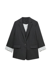 pinstripe three-quarter-sleeve blazer Highlights - Grey - Pinstripe pattern - Three-quarter sleeves - Button fastening - Front flap pockets - Notched lapels Imported Composition Wool 89%, Polyester 11% Washing instructions Read Manufacturer Guidelines