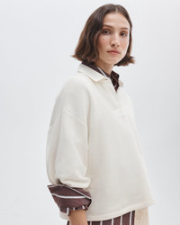 Vintage varsity. This cropped polo sweater channels collegiate cool. A contrast woven collar creates a subtle shift in texture from its cotton-blend loop-terry cloth that's washed for a soft and worn-in feel. Roomy and oversized, it's the ultimate comfortable layer. This style runs large, so for the closest fit, consider sizing down. Size & Fit • Oversized fit • Fits large to size. Consider sizing down for a closer fit. • Size Small: Body length 22.75", chest 45", sweep 40", sleeve length 32.75" • Model is 5'10" wearing size small Features & Details • 78% cotton, 22% polyester • Unlined • Contrast woven placket and collar combo • Ribbed cuff • Faux horn buttons • Machine wash cold inside out on delicate & lay flat to dry • Do not dry clean • Imported Product ID: RE9826ST3VW