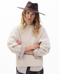 Top if off. Crafted in soft felted wool, this classic fedora hat is trimmed with a leather band around the crown that features oblong pebble-shaped studs inspired by forms from fine jewelry. Size & Fit • Length: XS: 21.65", S": 22.44", M": 23.23" • Hat width: 16.5" Features & Details • 100% wool • Brush clean with a dry, soft cloth or wipe with a damp cloth as needed • Leather trim • Jewelry-inspired pebble studs • Imported Product ID: RL3125FD30G
