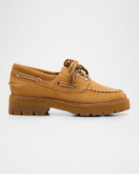 - Crafted from supple calf suede, the "Cameron" boat shoes by Rag & Bone are elevated with mocassin-style stitching and removable contrast paracord laces - 2.75 in / 70 mm chunky heel - Round moc toe - Lace-up vamp - Comfortable padded collar - Slip-on style - OrthoLite® footbed - Rubber outsole - Lining: Leather/suede - Leather method dry cleaning - Imported