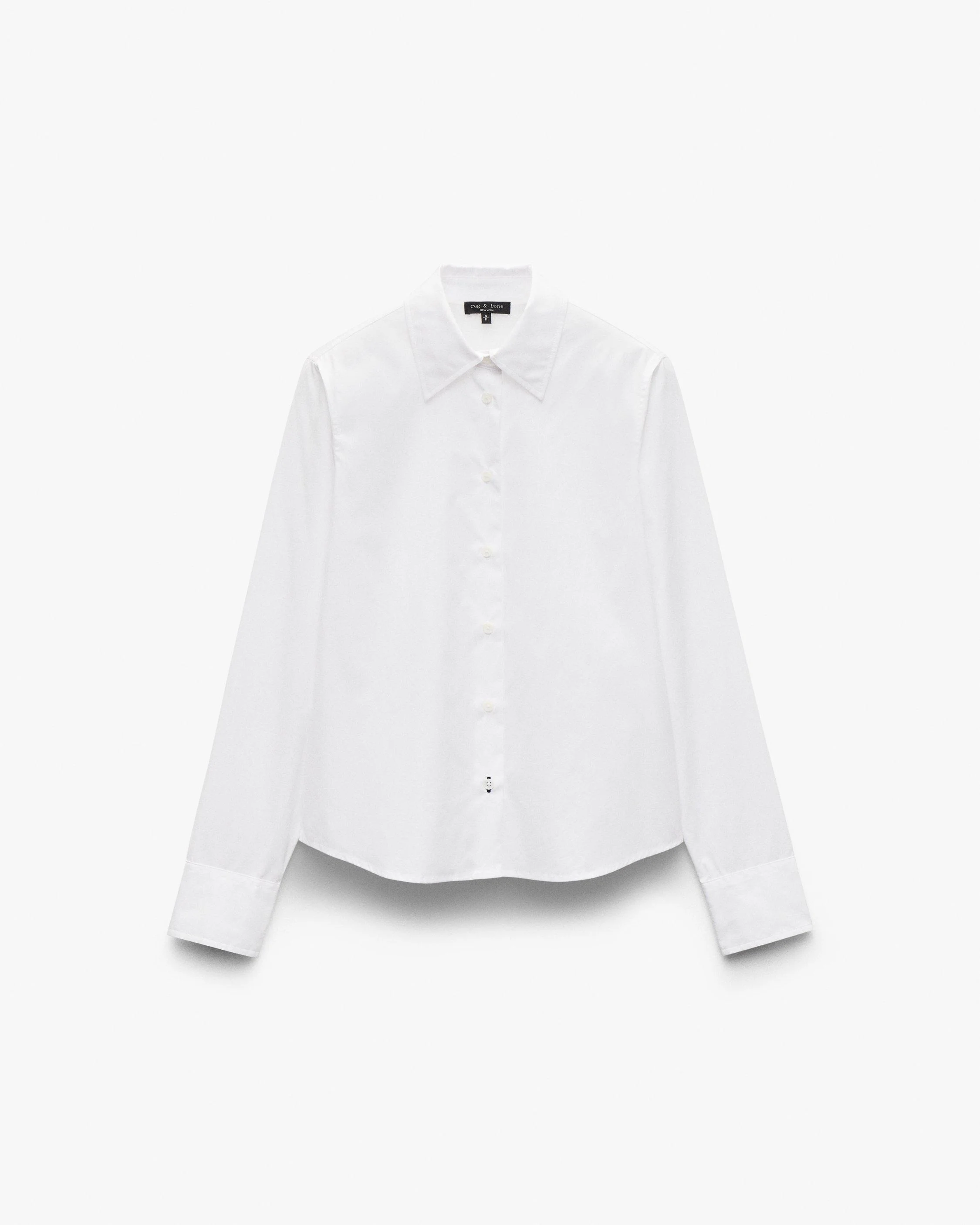 Solid choice. A forever staple, reimagined in lightweight cotton poplin with a slim profile that's perfectly tailored from shoulder to hem. It's the perfect button-up shirt to wear under a blazer. But looks just as sleek and chic by itself. Size & Fit • Slim fit • Fits true to size • Size small: Back length 24", chest 38", sweep 39" • Model is 5'10" wearing size small Features & Details • 100% cotton • Machine wash warm & tumble dry medium • Embroidered rag & bone logo at cuff • Contrast thread color at bottom buttonhole • Unlined • Imported Product ID: RA3L25HSMCO