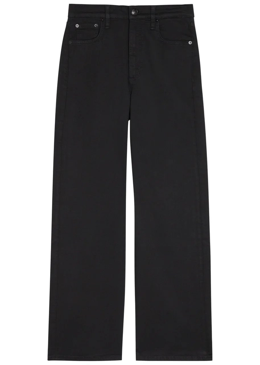 Info & Care rag & bone stretch-denim jeans High-rise fit, wide-leg cut, belt loops, five pockets, embroidered logo at back Partially concealed button and zip fastening at front 43% viscose, 33% cotton, 17% lyocell, 5% polyester, 2% elastane Machine wash cold inside out to avoid colour transfer Size & Fit Front rise: 12 inches/ 30.5cm Inside leg length: 29 inches/ 73.5cm Midweight Model is 5'8"/ 173cm and wears a size;W27