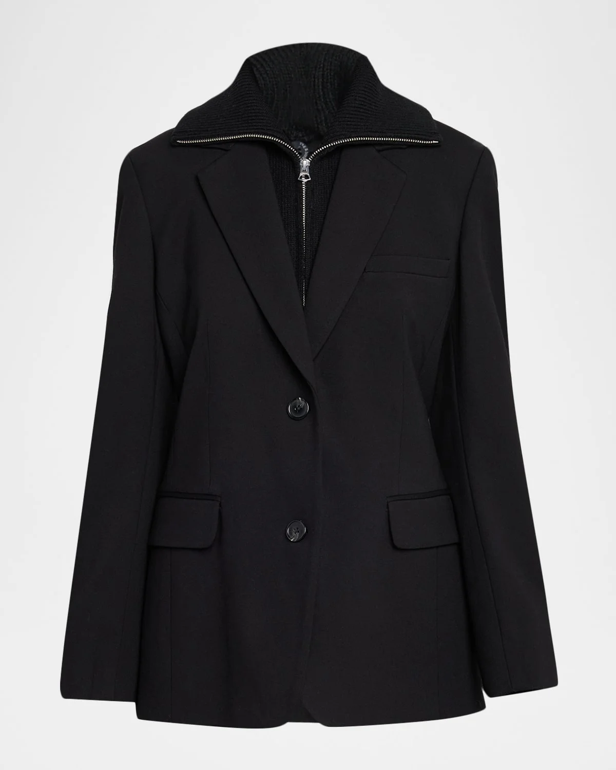 A 2in1 silhouette, the "Frank" ponte blazer by Rag amp; Bone features a classic fit with a matching sweater inlay that can be zipped in or out for versatile styling. Notch lapels Long sleeves with button cuffs; extended ribknit cuffs Chest welt pocket Hip flap pockets Two buttonfront Viscose/nylon/polyamide/elastane Dry clean Imported