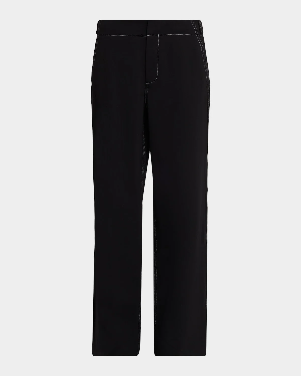 Rag amp; Bone "Irina" pants crafted in ponte and finished with contrast topstitching High rise Adjustable waist button tabs Side slant pockets; patch patch pocket Wide legs Full length Concealed button/zip fly; belt loops Viscose/nylon/polyamide/elastane Dry clean or machine wash cold Imported