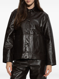 panelled leather jacket Highlights - Brown - Calf leather - Front button fastening - Front patch pockets - Collared neckline - Straight hem Imported Composition Calf Leather 100% Lining: Polyester 100% Washing instructions Read Manufacturer Guidelines