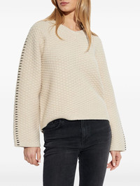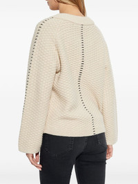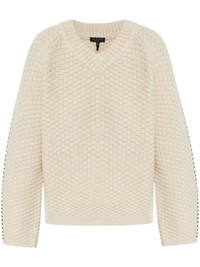 waffle-knit sweater Highlights - Light beige - V-neck - Long raglan sleeves - Ribbed cuffs and hem Imported Composition Wool 100%