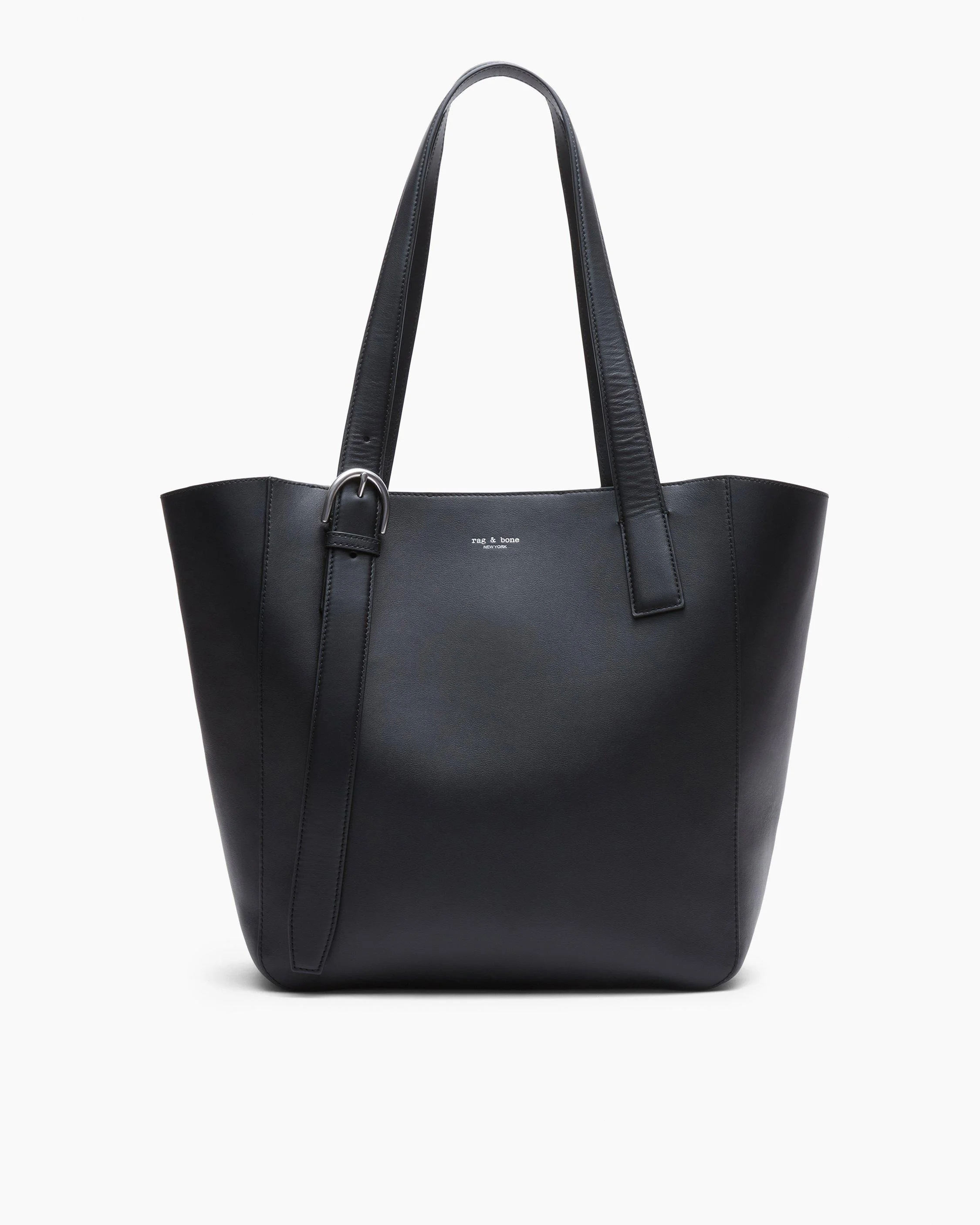 Quietly capable. Sculpted from buttery leather, this minimal tote bag makes its point with a soft form roomy enough for most laptops. Finished with adjustable handles, it seamessly switches between dressed up and dialed down depending on the day's demands. Size & Fit • Dimensions: 21.3" x 5.5" x 13.4" • Strap length: 14"-16" Features & Details • 100% cow leather • Professional clean only • Metal clasp closure • Dust bag included • Imported Product ID: LE101325