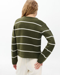 A classic, reimagined. This striped V-neck cardigan updates the lady jacket silhouette with a relaxed fit and super-soft wool in a textured stitch. Braided metal buttons add further depth and dimension. Size & Fit • Relaxed fit • Fits true to size • Size small: Body length 20", chest 36.5", sweep 36", sleeve length 22.5 • Model is 5'9.5" wearing size small Features & Details • 100% Wool • Front button closure • Patch pockets at hips • Machine wash inside cold with like colors • Lay flat to dry • Cool iron on the reverse side if needed or dry clean • Imported Product ID: RG9H25F6MWL