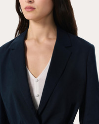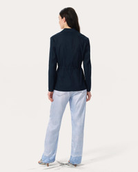 Designed like a blazer. Finished like a jacket. Crafted from an airy linen blend, this lightweight layer borrows from both suiting and outerwear with a notch-lapel silhouette tailored for a longer, field jacket-like length. Hidden front buttons and internal bungee cords at the waist further nod to its utilitarian inspiration. Play up the effortlessly chic look by rolling the sleeves to reveal their striped lining. Size & Fit • Classic fit • Fits true to size • Size 4: Front length 28.5", center back 27.5", chest 40.5", sleeve length 33" • Model is 5'11" wearing size 2 Features & Details • Body: 52% linen, 46% viscose, 2% elastane • Body Lining: 51% viscose, 49% polyester • Sleeve Lining: 52% polyester, 48% viscose • Dry clean only • Bungee at waist with stoppers and eyelets at bungee openings • Hidden faux horn buttons at center front and faux horn buttons at sleeve vents • Half-lined body • Striped sleeve lining • • Hidden front two-button closure • Imported Product ID: WAW25P4009CV09