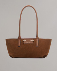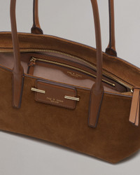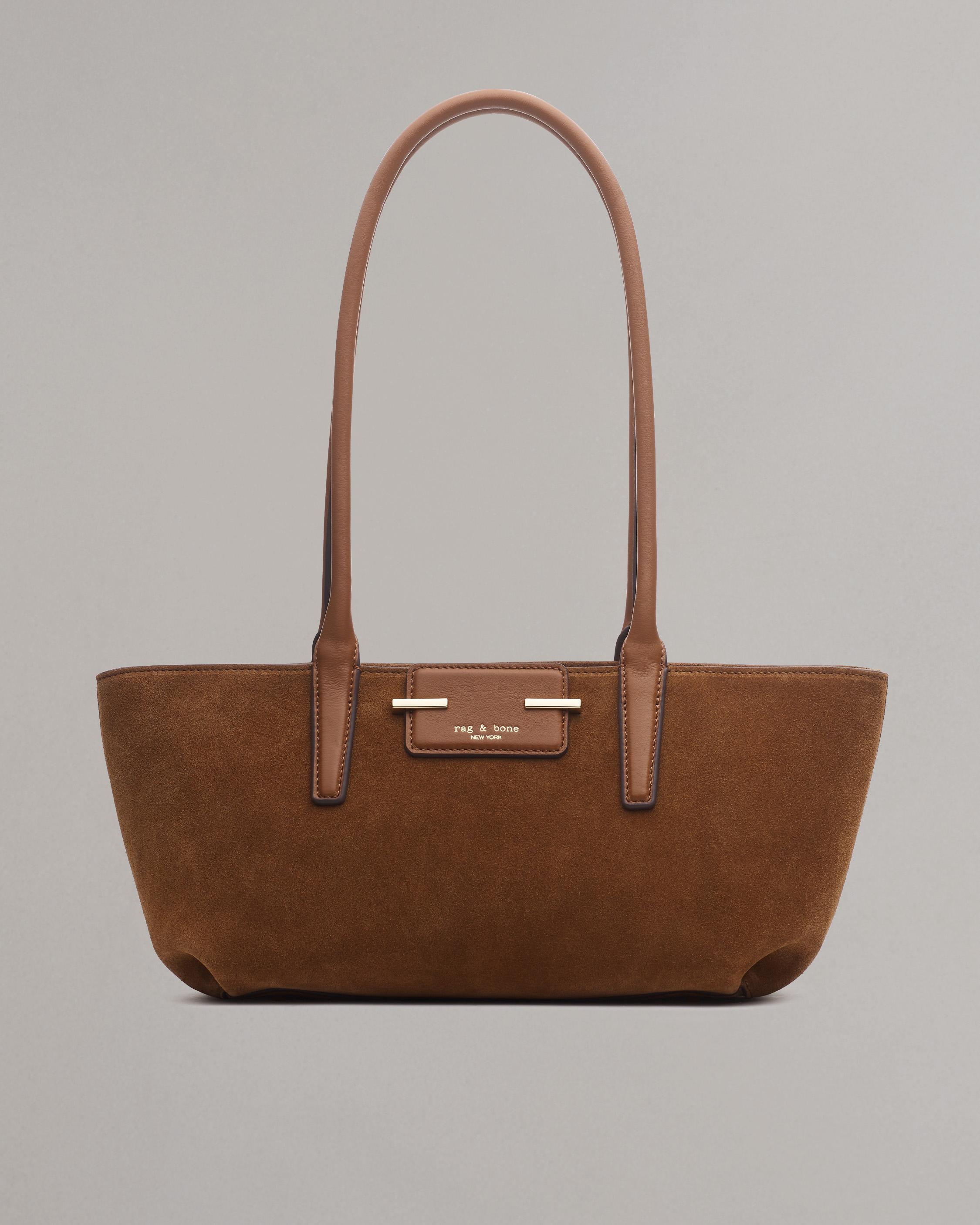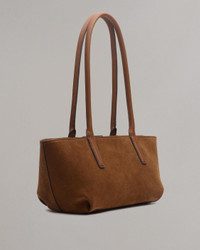The small yet sophisticated shoulder bag you've been searching for. Crafted from Italian-milled suede, this structured east-west satchel features a fresh logo patch with sleek metal bars and can be comfortably slung over your arm. Size & Fit Height 6.7" x width 9.8" x depth 4.7" Drop length: 11.0" Features & Details 100% Cow suede Cleaning: Professional leather cleaner Fresh logo patch with sleek metal bars Zipper closure Zipper pocket Dust bag included Imported. Italian materials. Product ID: SD100105