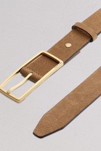 A versatile hip belt with a wide rectangular buckle. Size & Fit XS: 30'', S: 32'', M: 36'', L: 39.5'' Features & Details 100% Calf suede Professionally leather clean Branded logo hardware in light brushed gold finish Lined construction, black edge paint Imported Product ID: WJW19H1016AP16