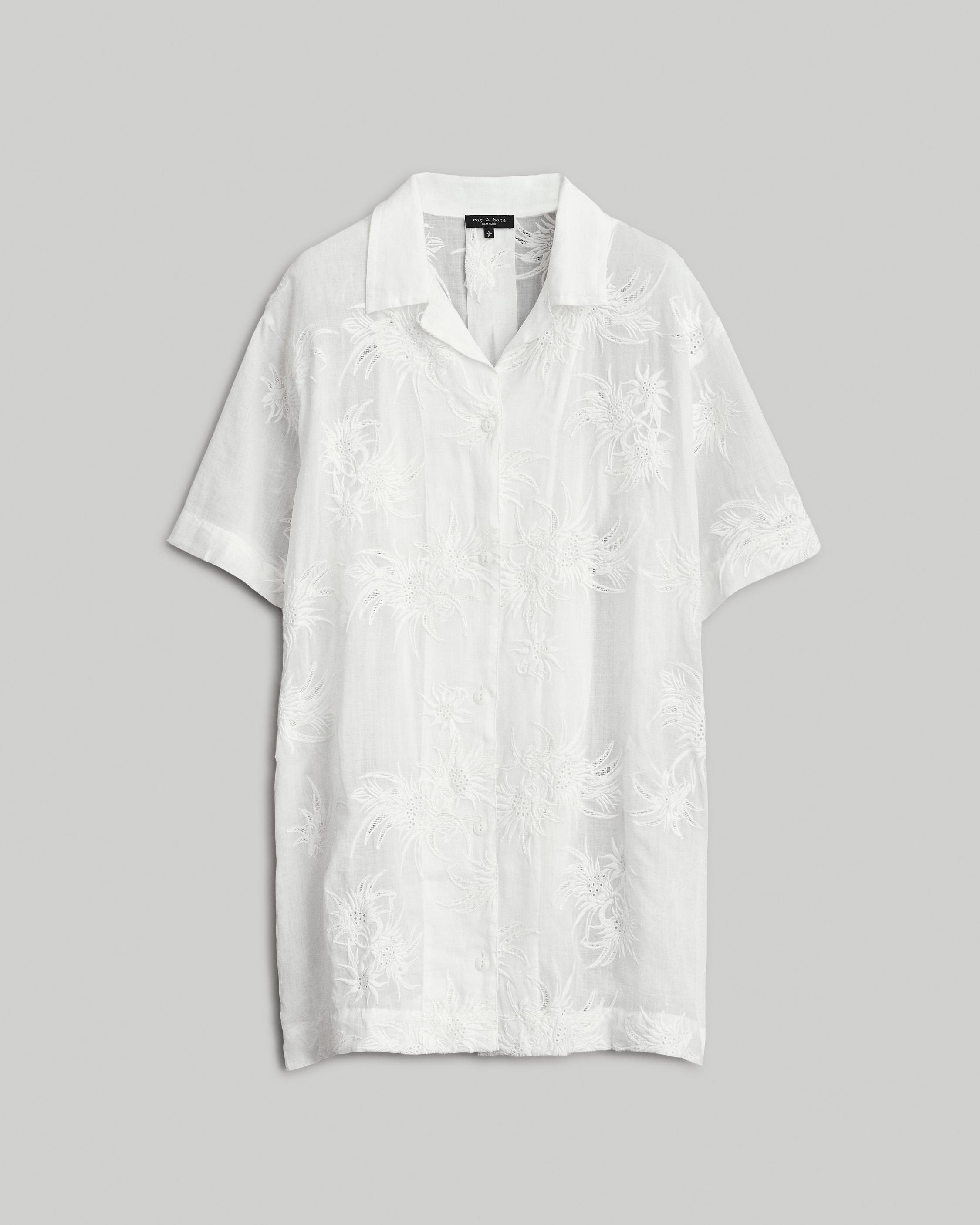 Our Reed Shirt Dress is a warm-weather staple. Cut from a lightweight fabric crafted from natural fibers, this dress is complete a with self-belt and a removable slip with adjustable straps. Size & Fit Classic fit Size Small: Front length from high point shoulder 36 1/4", chest 51 1/2", sweep 51 1/2" Model is 5'10.5" wearing a size small Features & Details Fabric: 100% Ramie Embroidery: 100% Polyester Slip: 100% Modal Machine wash cold with like colors. Delicate cycle. Do not bleach. Tumble dry low. Cool iron Recycled polyester fisheye buttons at center front, self belt, removable slip with adjustable straps Imported Product ID: WAW23S3014V614