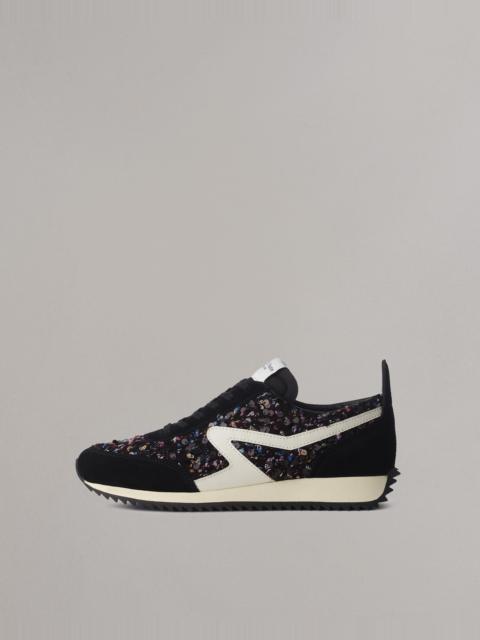 Our (slimmer) take on a classic, old-school trainer. This lace-up sneaker is crafted from metallic nylon with suede trims. Inside, you'll find dual-density antimicrobial foam insoles: OrthoLite® Lazy-Hybrid™ for custom-fit comfort, and OrthoLite® Recycled for stability and support. Size & Fit 0.75" eva midsole and rubber outsole Features & Details Upper: 100% Cow suede and metallic nylon Outsole: 100% Rubber Lining: 100% Calf leather Cleaning: Professional leather cleaner OrthoLite footbed Imported Product ID: WFF24HF1023SM23