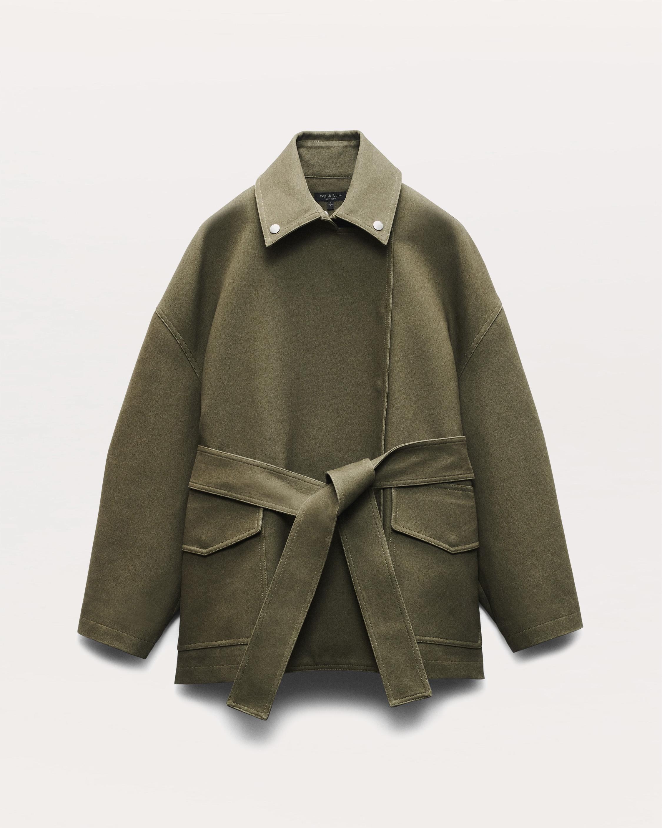 New proportions. This take on the iconic men's field jacket is all about volume. Crafted for a relaxed, boxy fit from structured cotton twill, it's finished with elegant details like a hidden asymmetric placket and snapped cuffs. Sculpt its oversized silhouette to your liking using the wide, removable belt. Size & Fit Relaxed boxy fit, hits at the hip Size Small: Front length 30 1/8", back length 29", chest 51", sleeve length 33 1/2" Model is 5'10" wearing size small Features & Details Body: 100% Cotton Lining: 51% Viscose, 49% Polyester Machine wash cold with like colors, do not use bleach, tumble dry low, low iron if needed Self belt at waist Hidden snap closure Hip patch pocket with flap Imported Product ID: WAW25S2002BD02