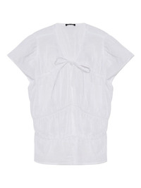 ruffled peplum blouse Highlights - White - Short sleeves - Tie detail at neck - Gathered detailing - Ruffled hem Imported Composition Ramie 100%