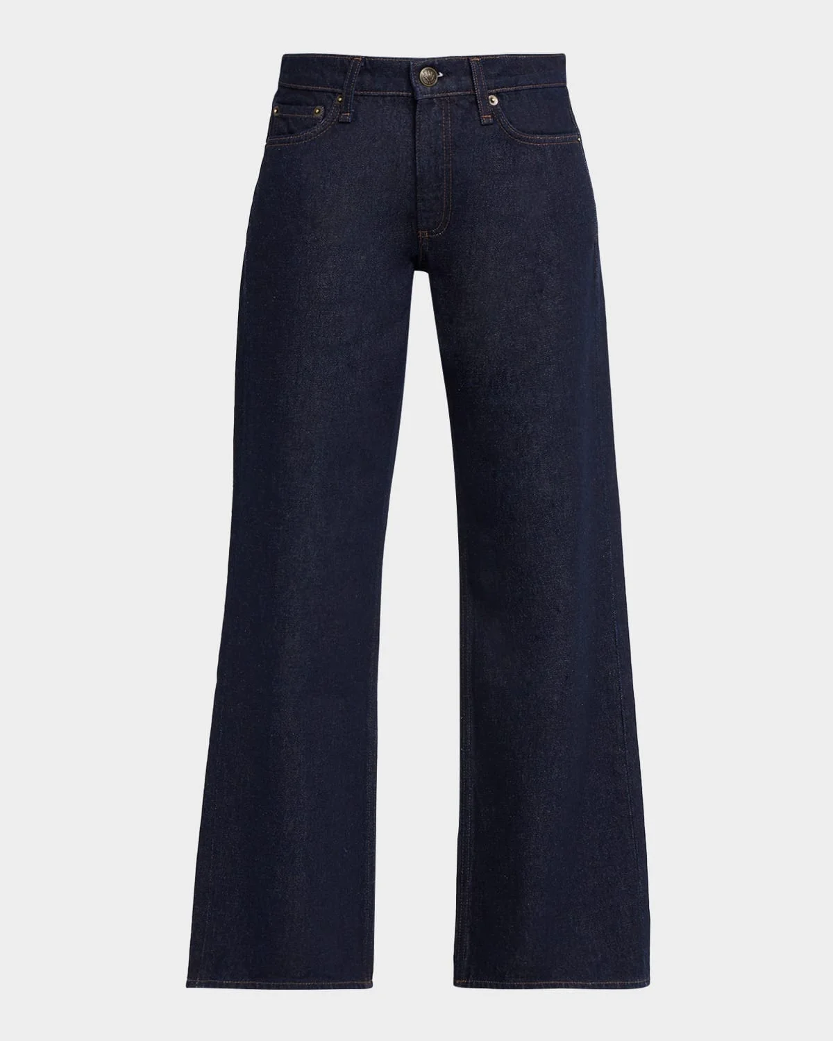 Rag & Bone "Saige" straight-leg jeans crafted from cotton denim & nbsp; Approx. 9.3" rise; 32 " inseam Low-rise; sits at the hip Five-pocket style & nbsp; Relaxed fit Full length Button/zip fly; belt loops & nbsp; Cotton Machine wash cold inside out & nbsp; Imported SIZE & FITModel measurements: 5 & apos;10" tallModel is wearing a US size 4/Small