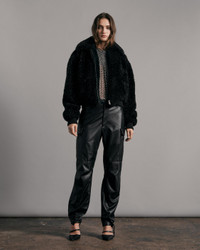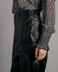 This oversized style is perfect for days off, on, or nights out. Crafted from faux leather stretch fabric with pockets on the front, back and thighs modeled on a traditional, functional cargo pant. Size & Fit Oversized cargo pant Size 4: 11 7/8" front rise, inseam 31 1/2", leg opening 16" Model is 5'9" wearing a size 2 Features & Details 100% Polyester Dry clean only Back buckle details Zip fly and button closure Front scoop pockets, patch thigh pockets, back pockets Stretchy faux leather Made in India Product ID: WAW22F7011EP11