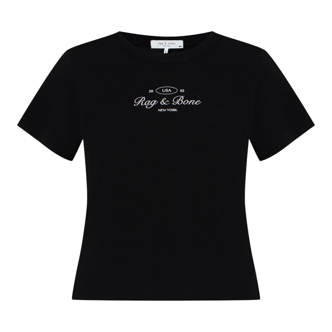 600067204BLK0XS / WCC25ST038CH40/00/BLACK - Soft cotton jersey construction - Signature rag & bone script logo - Short sleeve design - Crew neckline - Relaxed baby tee fit - Classic black colorway The rag & bone Script Baby Tee delivers contemporary streetwear with signature New York aesthetic. Crafted from soft cotton jersey in classic black, featuring the brand's signature script logo positioned at the chest. The relaxed baby tee silhouette offers versatile styling for modern wardrobes.