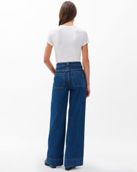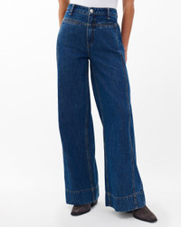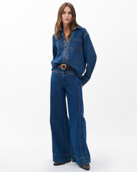 The Selah. High-rise, wide-leg jeans featuring contrast stitching and unique yoke detail at the waist. Crafted from our Lightweight Rigid non-stretch denim that provides structure, but breaks in over time for a soft and comfortable feel. In Kennmore, a dark indigo wash. Size & Fit • High-rise • Wide leg, full-length • Fits true to size • Size 26: 11.5" rise, 32" inseam, 25.5" leg opening • Model is 5'9" wearing size 24 Features & Details • 100% cotton • Rigid Denim in Kenmore, a dark indigo wash • Machine wash cold inside out on delicate & lay flat to dry • Color may bleed • Signature dagger buttons & branded washer rivets • Zip fly with button closure • Front welt pockets & back patch pockets • Imported Product ID: RJ1225F1RKE