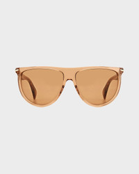 A shield silhouette with an acetate frame and 100% UV protection. Size & Fit Shield shape 57mm x 14mm x 140mm Features & Details Acetate 100% UV protection Made in China https://www.p65warnings.ca.gov/. Product ID: RNB1056S