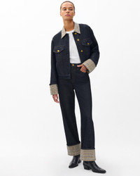 The Shea. High-rise jeans with a fitted waist and a relaxed, straight leg that hits at the ankle. An easy, everyday fit. Crafted from Lightweight Rigid non-stretch denim that provides structure, but breaks in over time for a soft and comfortable feel. In Twilight Combo, an inky dark wash with a sewn-down 4" cuff trimmed at the face with an Italian-milled heritage wool plaid. Size & Fit • High-rise • Ankle-length • Fits true to size • Size 26: 11.75" front rise, 30" inseam, 18.25" leg opening, 4" cuff • Model is 5'9" wearing size 24 Features & Details • Self: 100% cotton • Combo: 37% acryclic, 31% wool, 21% polyester, 6% polyammide, 3% other • Lightweight Rigid Denim in Twilight Rinse Combo, an inky dark wash with a sewn-down 4" cuff trimmed at the face with an Italian-milled heritage wool plaid • Dry clean only • Signature dagger button and branded rivets • Zip fly with button closure • Five-pocket silhouette • Imported Product ID: RJ2225F1XTR