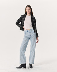 The Shea. Full-length high-rise jeans designed with relaxed, straight legs. Crafted from Lightweight Rigid non-stretch denim that provides structure, but breaks in over time for a soft and comfortable feel. In Aliah Jewel, a light indigo wash embellished with stripes and hand-sewn clusters of crystals. Size & Fit High-rise, straight leg, full length Size 26: 11 7/8" front rise, 32" inseam, 18 1/4" leg opening Model is 5'10.5" wearing size 25 Features & Details 100% Cotton Lightweight Rigid Denim in Aliah Jewel, a light indigo wash embellished with stripes and hand-sewn clusters of crystals Hand wash only Signature dagger shank button at center front with a zipper fly, metal rivets Five-pocket silhouette Imported Product ID: WDD25S2998RGAJ