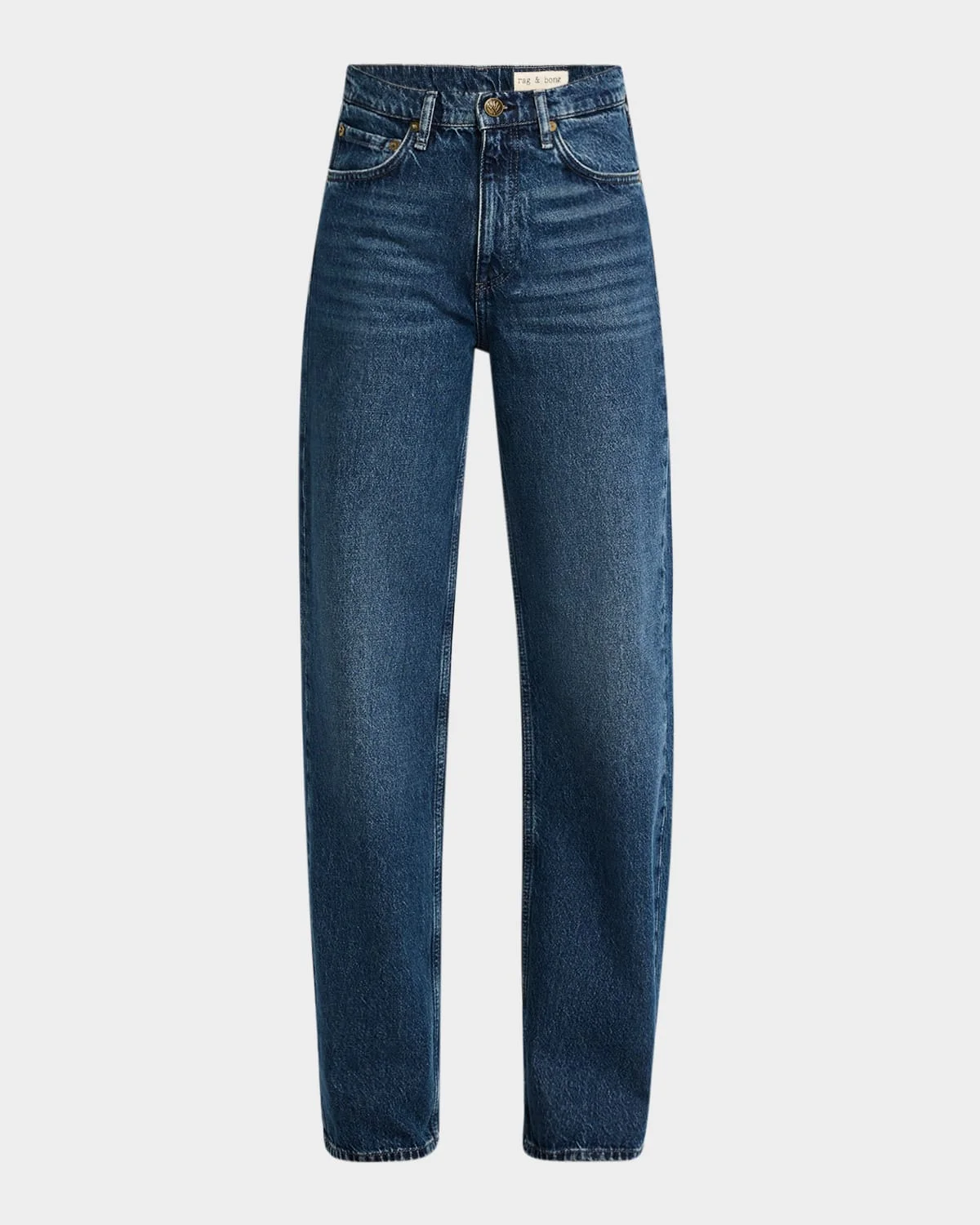 - Rag & Bone "Shea" straight-leg jeans in medium-wash denim - Approx. 32" inseam - High rise - Five-pocket style - Relaxed fit - Full length - Button/zip fly; belt loops - Cotton - Machine wash cold - Imported - Model is 5'10"/177cm. - Size Note: Item runs large, consider ordering a size down.