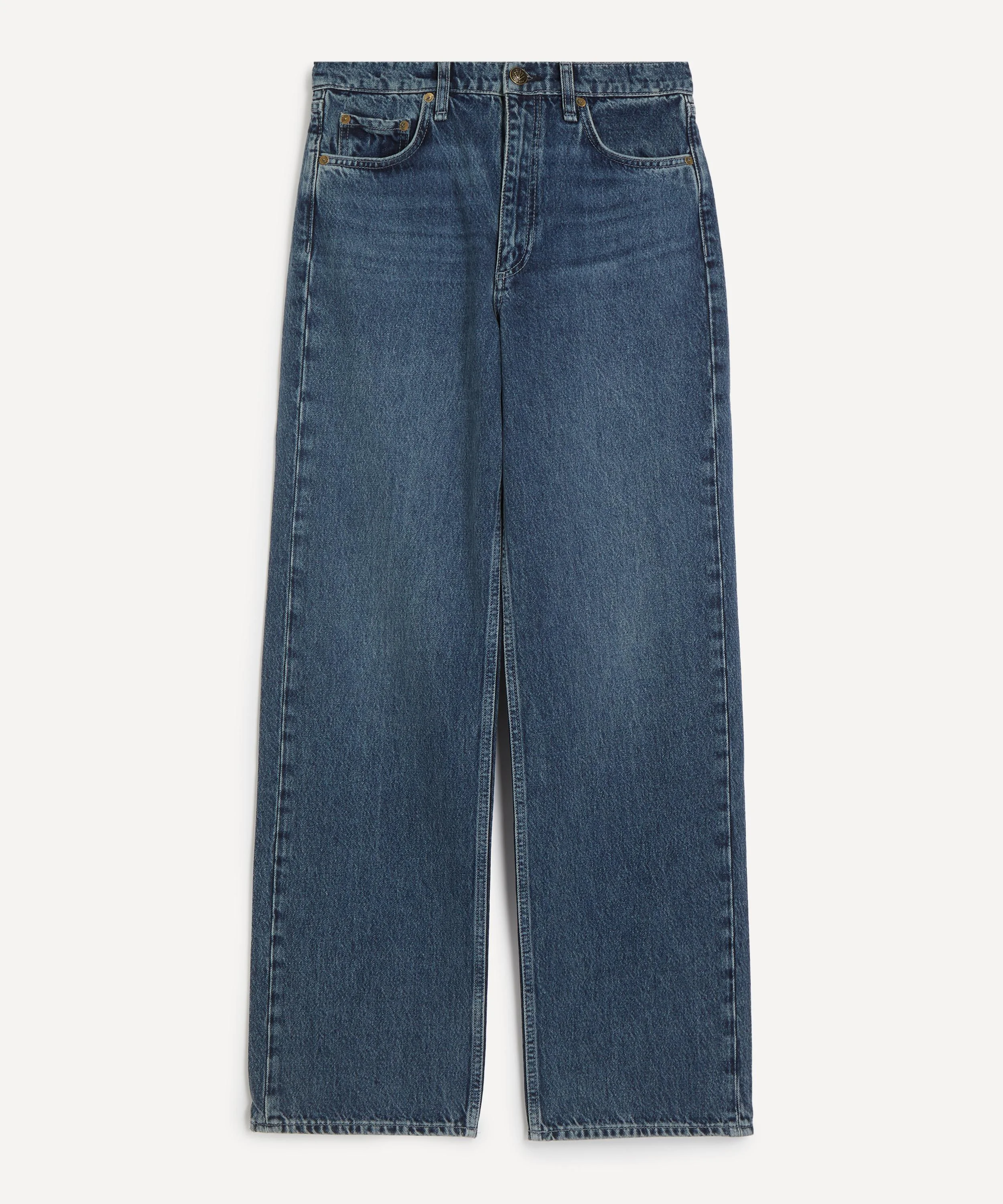 DETAILS Shea jeans Lightweight Rigid denim High-rise Relaxed fit Straight leg Full length Front rise: 12” Inseam: 32” Leg opening: 19” Designer wash: Adeline Zip fly with a button closure Signature dagger shank button closure Washer rivets 5-pocket construction Branded jacron patch SIZE & FIT Model is 178.5cm/5'10" ; Chest: 77.5cm; Waist: 58.5cm; Hips: 86cm and wears a size 27 COMPOSITION & CARE 100% Cotton Machine wash cold inside out & lay flat to dry