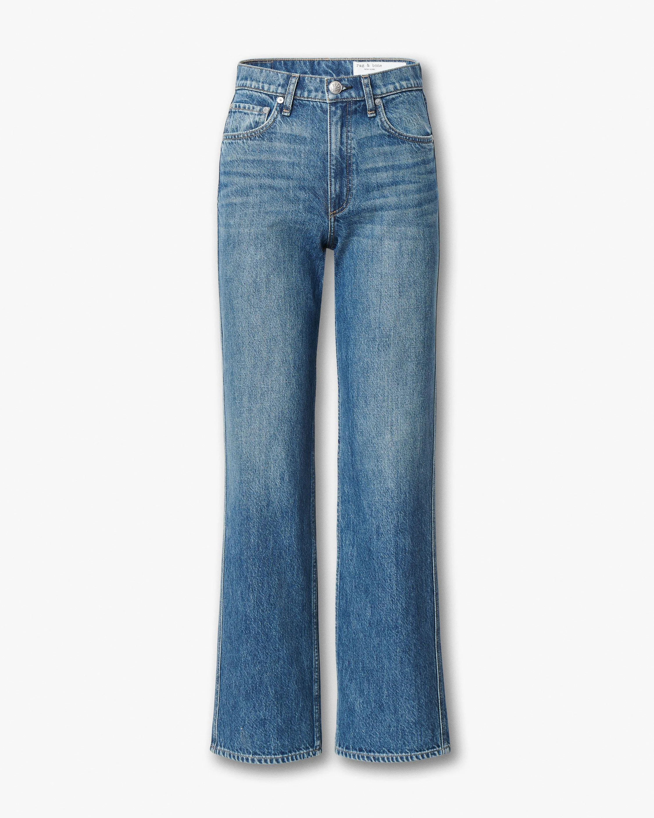The Shea. High-rise jeans with a fitted waist and a relaxed, straight leg that falls past the ankle. An easy, everyday fit. Crafted from Lightweight Rigid non-stretch denim that provides structure, but breaks in over time for a soft and comfortable feel. In Easton, a medium indigo wash. Size & Fit • High-rise • Full length • Fitted waist with a relaxed straight leg • Fits true to size • Size 26: Rise 11.75", inseam 32", leg opening 18" • Model is 5'9" wearing size 24 Features & Details • 100% cotton • Lightweight Rigid Denim in Easton, a medium indigo wash • Zip fly with a button closure • Signature dagger button & rivets • Five-pocket silhouette • Machine wash cold inside out on delicate & lay flat to dry • Color may transfer • Imported Product ID: RJ3925H1REA