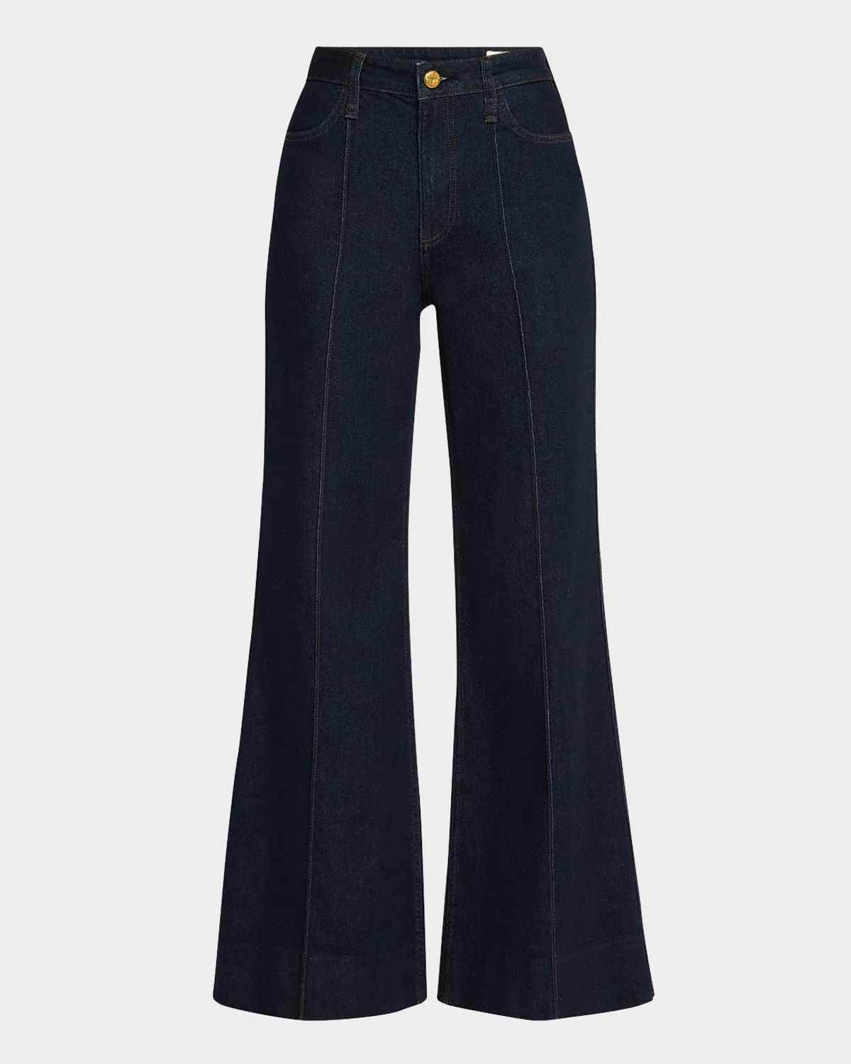 - Rag & Bone "Skylar" trouser jeans in dark-wash denim - High rise - Four-pocket style - Pintuck front - Wide legs with a subtle flare - Full length - Button/zip fly; belt loops - Cotton/spandex - Machine wash cold - Imported