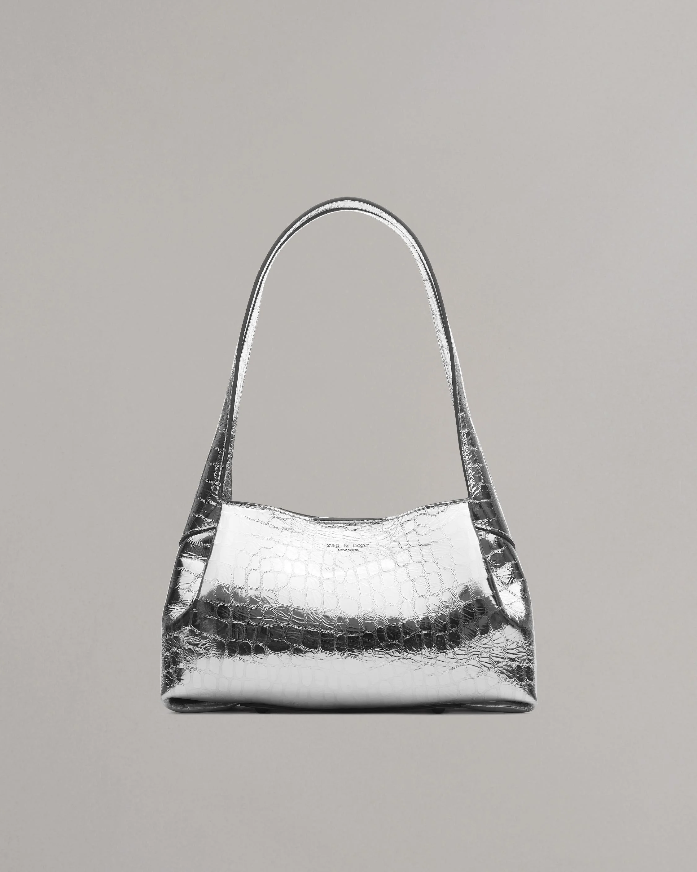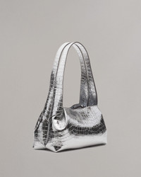 A functional spin on downtown nonchalance. Crafted from crocodile-embossed metallic calf leather, this shoulder bag features a luxe, unlined interior with a center zipped divider and concealed magnetic closure to keep your items organized and secure while on the go. Carry it comfortably by hand or slung over your arm. Size & Fit Height 10.2" x width 5.3" x depth 4.7" Drop length: 8.3" Features & Details 100% Cow metallic leather Cleaning: Professional leather cleaner Center divider, magnet closure, metal feet at the base Magnetic lock Unlined, two large sections separated by leather divider Dust bag included Imported. Product ID: ME101108