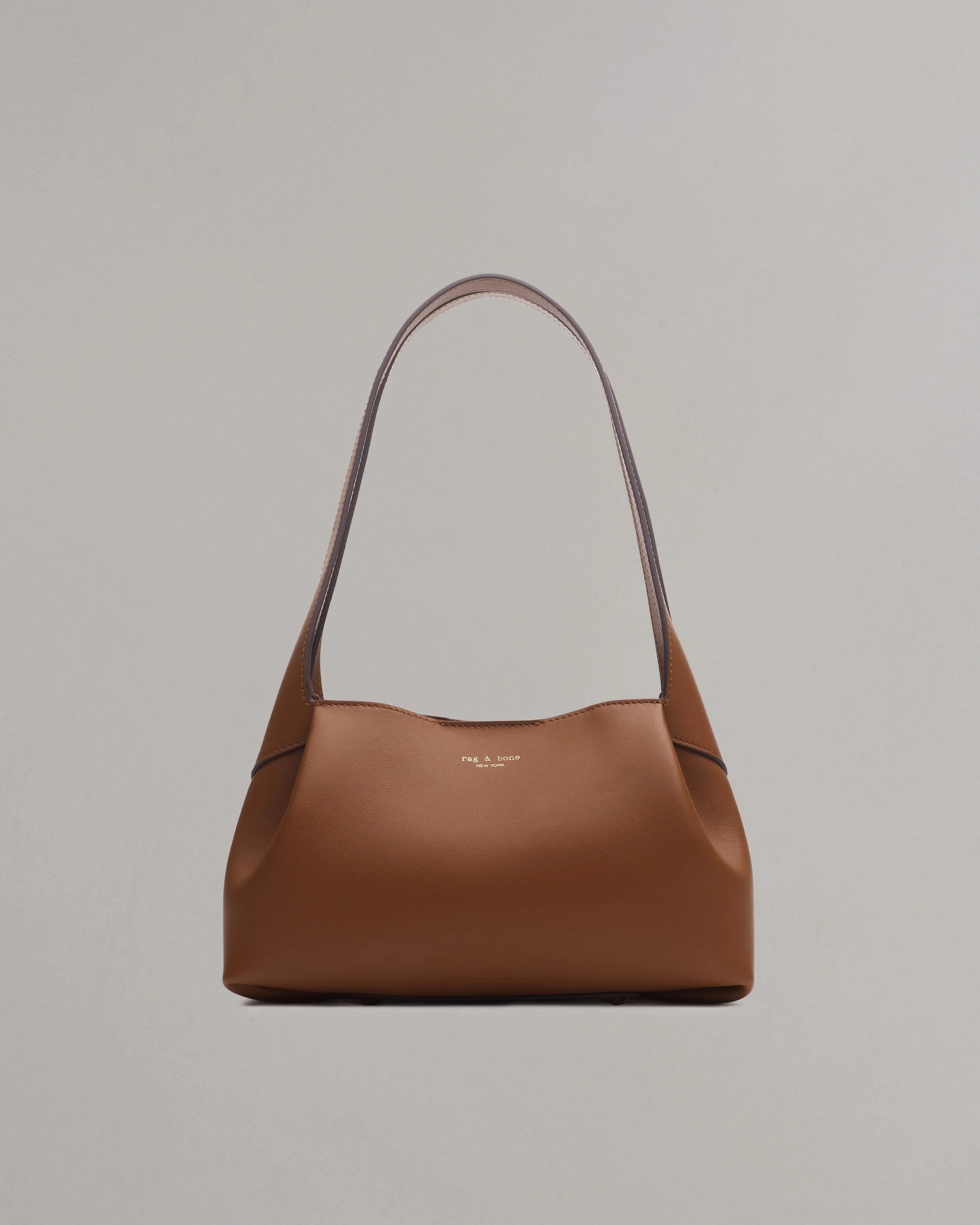 A functional spin on downtown nonchalance. Crafted from supple, Italian-milled calf leather, this shoulder bag features a luxe, unlined interior with a center zipped divider and concealed magnetic closure to keep your items organized and secure while on the go. Carry it comfortably by hand or slung over your arm. Size & Fit Height 10.2" x width 5.3" x depth 4.7" Drop length: 8.3" Features & Details 100% Cow leather Cleaning: Professional leather cleaner Center divider, magnet closure, metal feet at the base Magnetic lock Unlined, two large sections separated by leather divider Dust bag included Imported. Italian materials. Product ID: LE101108