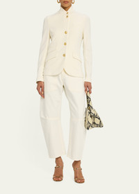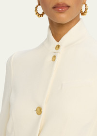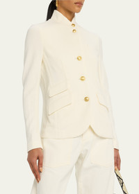 Rag & Bone "Slade" blazer in textured knit Stand collar Single-breasted front Long sleeves; button cuffs Chest welt pocket Front flap pockets Tailored fit Button-front closure Viscose/nylon/polyamide/elastane Dry clean Imported Online Inquiries: BGS21_T6KGH| Store Inquiries: #4996396